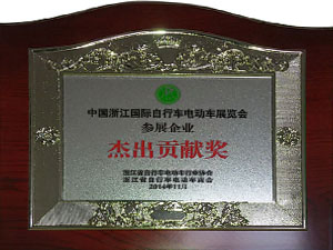 中国浙江国际自行车电动车展览会参展企业杰出贡献奖