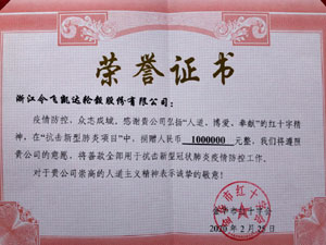 抗击新型肺炎捐赠百万元证书