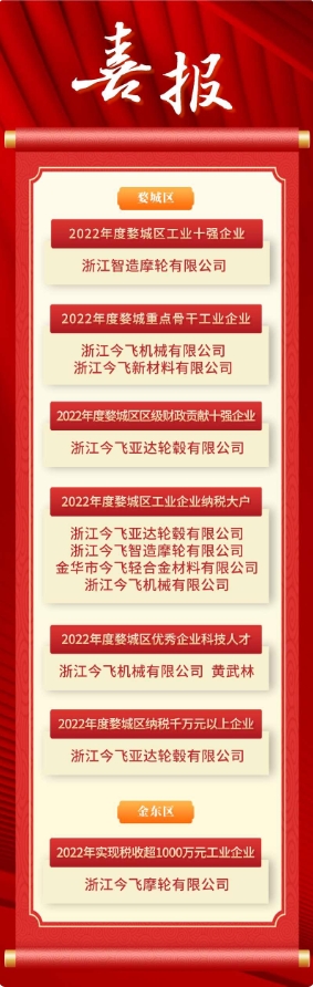 浙江开云手机平台·(中国)官方网站机械有限公司、浙江开云手机平台·(中国)官方网站新材料有限公司被评为2022年度婺城重点骨干工业企业