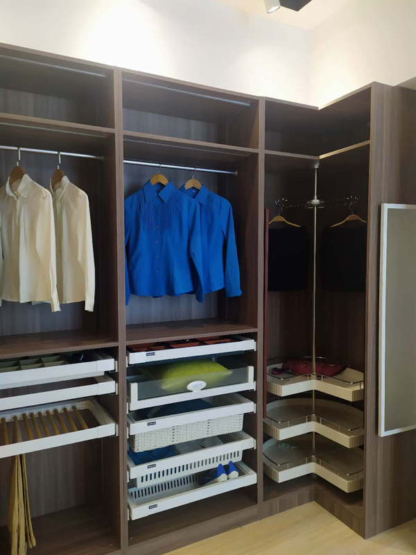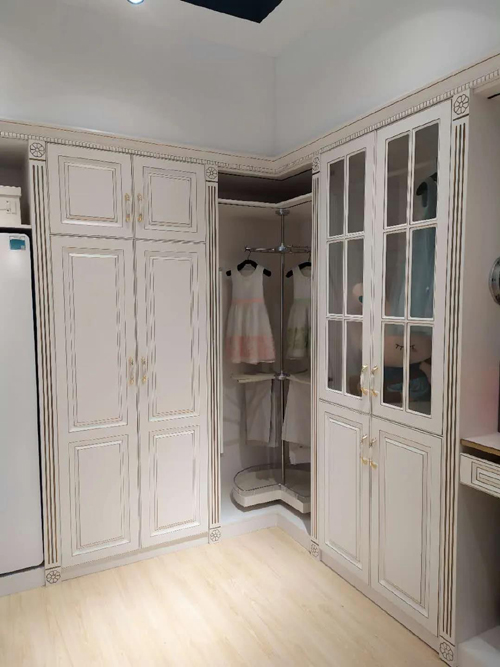 什么是转角衣柜?其实也可称为L型衣柜,一般依靠卧室90°转角式墙体进行设计,最大化的利用空间。